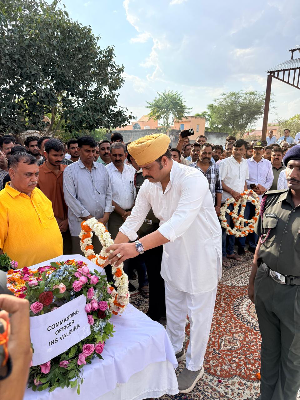 इस दौरान भाजपा नेता करणीसिंह, डीडवाना से भाजपा नेता जितेंद्र स़िह जोधा, तहसीलदार अनिरुद्ध देव, बीडीओ कुमुद सोंलकी, ईसीएचएस जिला प्रभारी अधिकारी राजेंद्र सिंह जोधा, गोविंद स़िह कसुम्बी सहित जनप्रतिनिधियों ने पुष्प चक्र अर्पित कर श्रद्धांजलि दी और शोक संतप्त परिवार के प्रति संवेदना व्यक्त की। अंतिम विदाई के दौरान माहौल गमगीन रहा और हर आंख नम नजर आई।