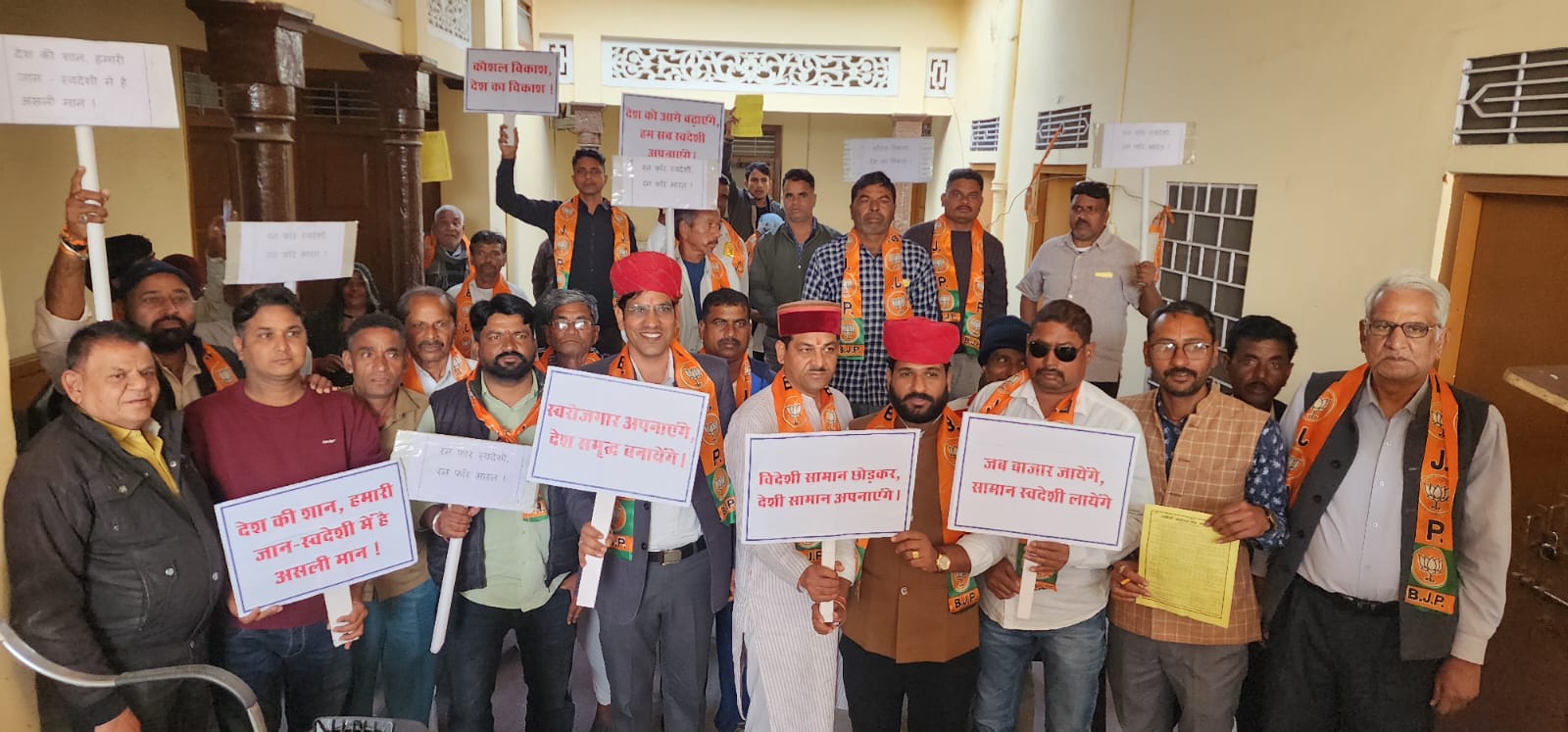 कुचामनसिटी(नागौर डेली न्यूज)। भारतीय जनता पार्टी कुचामन शहर द्वारा रन फॉर स्वदेशी अभियान के अंतर्गत आज कुचामन शहर में एक जागरूकता कार्यक्रम का सफल आयोजन किया गया। यह आयोजन भारतीय जनता पार्टी नागौर देहात के रन फॉर स्वदेशी अभियान के जिला संयोजक जसराज खुड़ीवाल के नेतृत्व में भारतीय जनता पार्टी कार्यालय, कुचामनसिटी में संपन्न हुआ। कार्यक्रम का मुख्य उद्देश्य देश के प्रधानमंत्री नरेंद्र मोदी के “स्वदेशी अपनाओ” के संदेश को जन-जन तक पहुँचाना तथा स्वदेशी वस्तुओं के उपयोग एवं उपभोग के प्रति आमजन को जागरूक करना रहा।