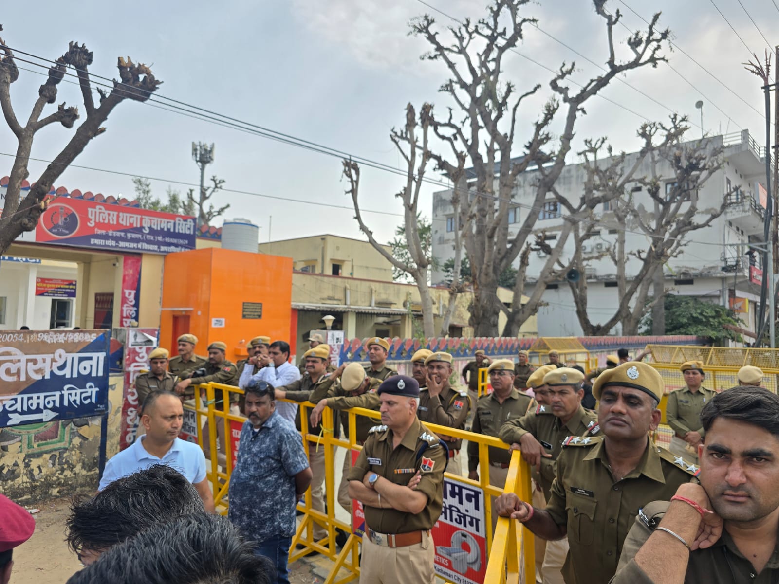कुचामनसिटी(नागौर डेली न्यूज)। गैंगस्टर रोहित गोदारा–वीरेन्द्र चारण गैंग द्वारा भाजपा नेता विजयसिंह पलाड़ा सहित व्यापारियों को रंगदारी की धमकियों के विरोध में मंगलवार को शहर में जबरदस्त जनआक्रोश देखने को मिला। प्रातः से ही लोग किनोई पार्क में एकत्र होने लगे और दोपहर तक हजारों की भीड़ उमड़ गई। सभा के बाद काले झंडों के साथ रैली लॉयन सर्किल व स्टेशन रोड होते हुए पुलिस थाने पहुंची, जहां धरने में तब्दील हो गई। आंदोलन में सैकड़ों महिलाओं की भागीदारी भी रही।